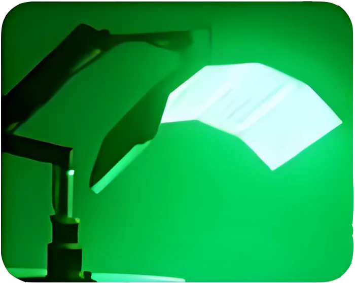 Green light neutralizes, balances, and stabilizes. It reduces skin oil secretion, balances water and oil levels and helps with lymphatic drainage.