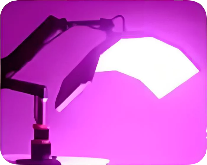 Purple light is antibacterial and anti-inflammatory, renewing skin and reducing wrinkles. It’s especially effective for treating acne and scars.